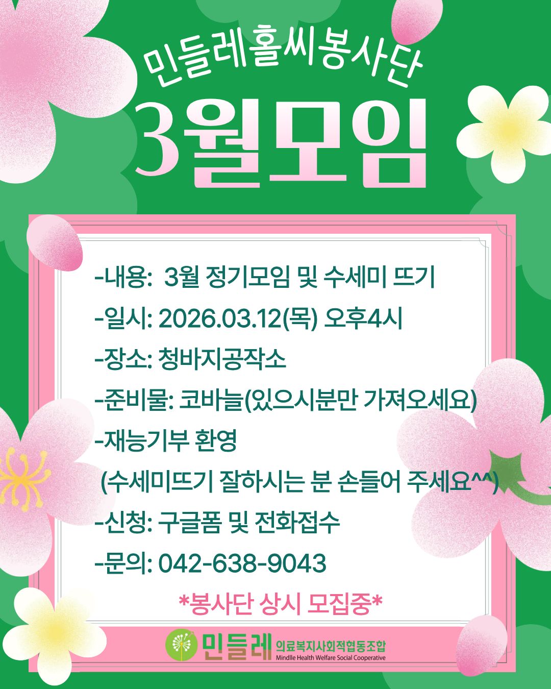 -내용: 3월 정기모임 & 수세미뜨기 배우기