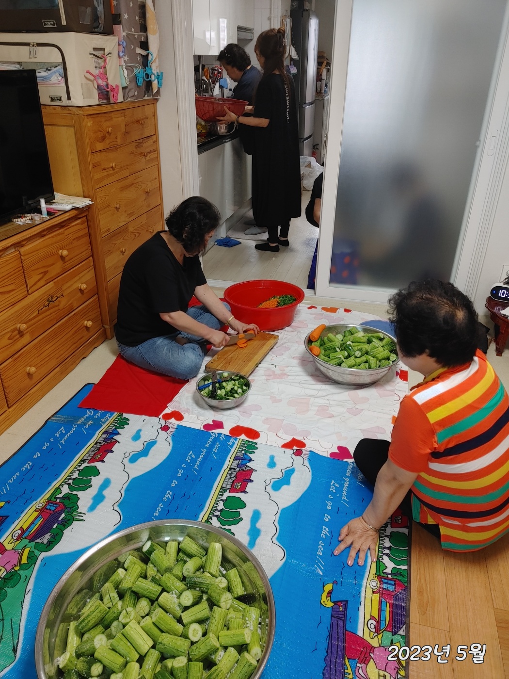 요즘 제철인 맛난 오이소박이를 담았습니다. 복도에서 부터 오이의 향긋함이 진동했던 날이었습니다. 재료사서 다듬고 마지막 분배까지 모두 같이 해주셨습니다. 간식도 준비해서 먹구요. 비가 와서 부침개도 같이 해서 먹었습니다. 오랫만에 많은 인원이 모여서 활동하는 하루였습니다. 모두 모두 가치했유 였답니다. 다음달 활동은 함께 걷기와 밑반찬 만들기로 하였습니다.^^