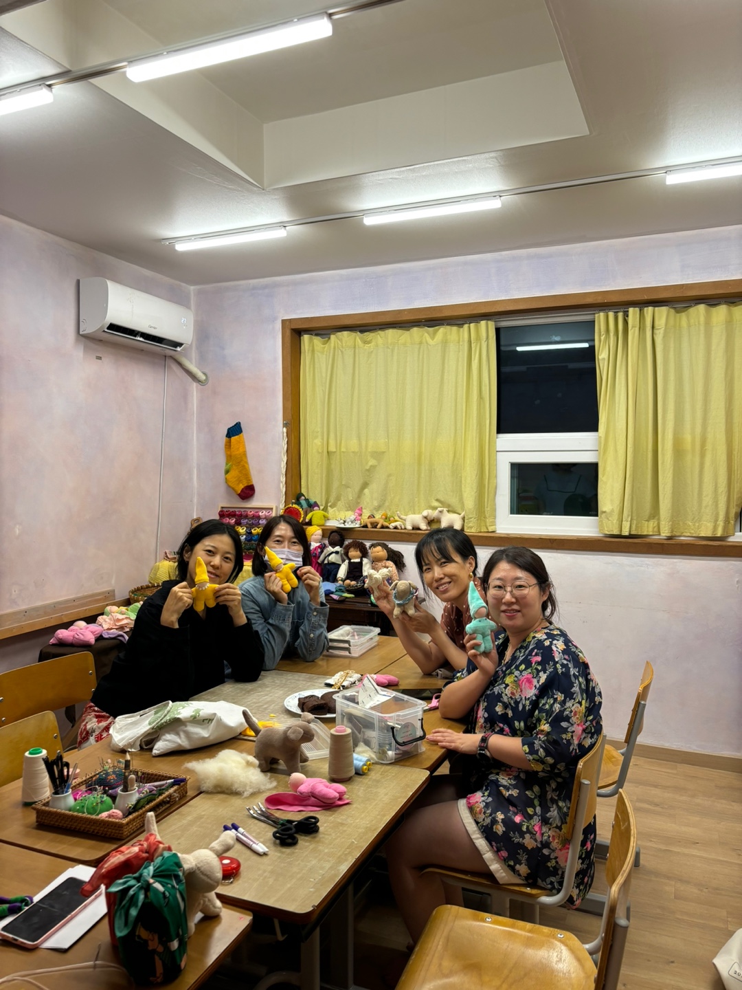 이번에는 요정인형을 시작합니다. 도안그리기부터 시작하는 사람도 있고, 벌써 바느질 시작하는 사람도 있습니다. 요정인형은 색깔이 알록달록해서 귀여운 맛이 더 나는것 같습니다. 색을 고를 때 다들 진지하게 고민을 했는데, 막상 고르고 보니 다른 사람이 고른 색이 더 이뻐보이기도 하고, 제가 고른 색이 제일 나은것 같아 '역시 최고의 선택이었다.'고 뿌듯해하기도 합니다. 어쨌든 한번 골랐으면 끝. ㅋㅋ