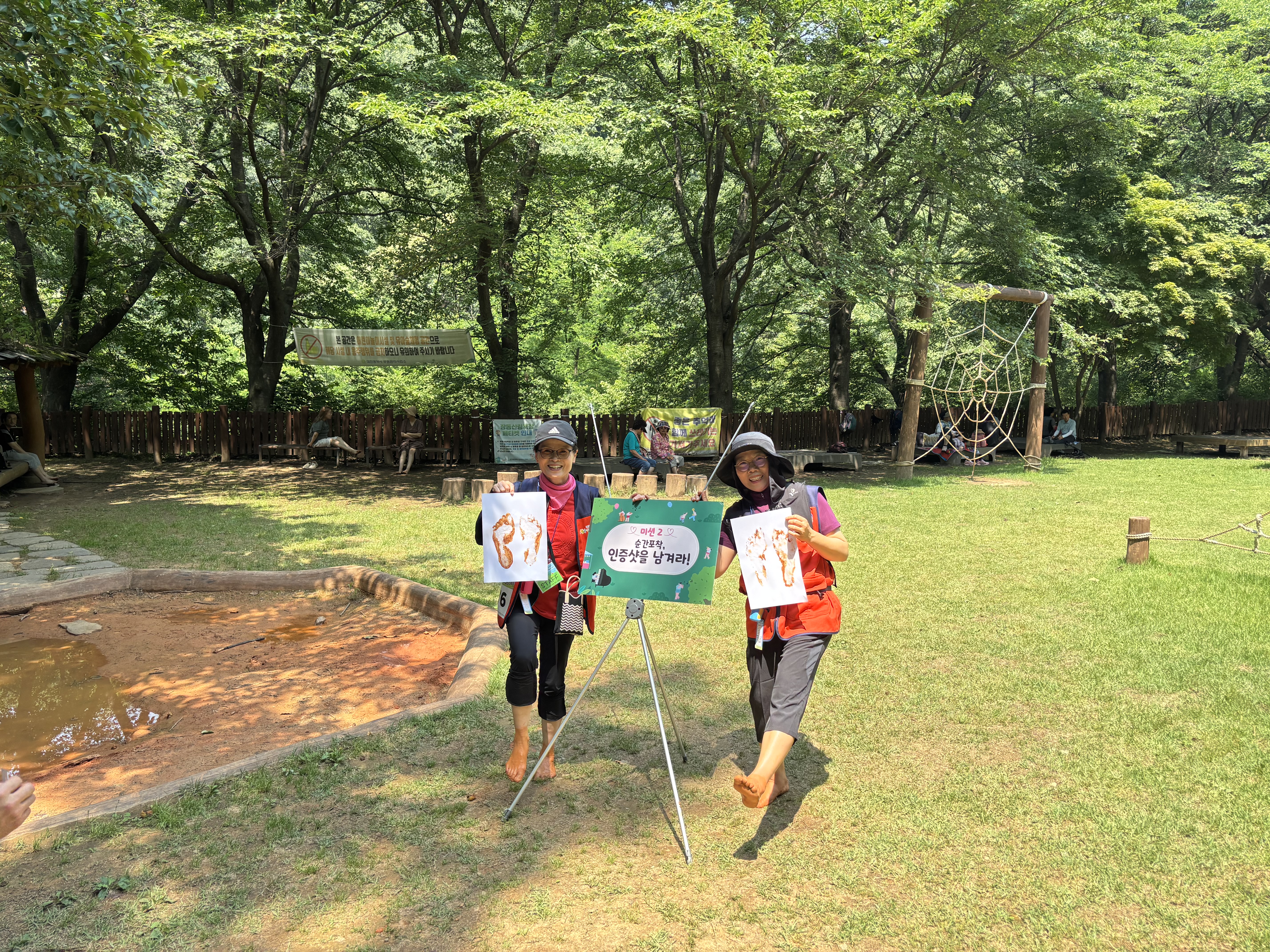 남부건강생활지원센터에서 치위생사와 함께하는 구강관리교육을 받은 후 장동휴양림으로 이동하여 황톳길(입구 -다목적광장-숲속음악장-제1정자까지) 맨발걷기를 하였습니다.