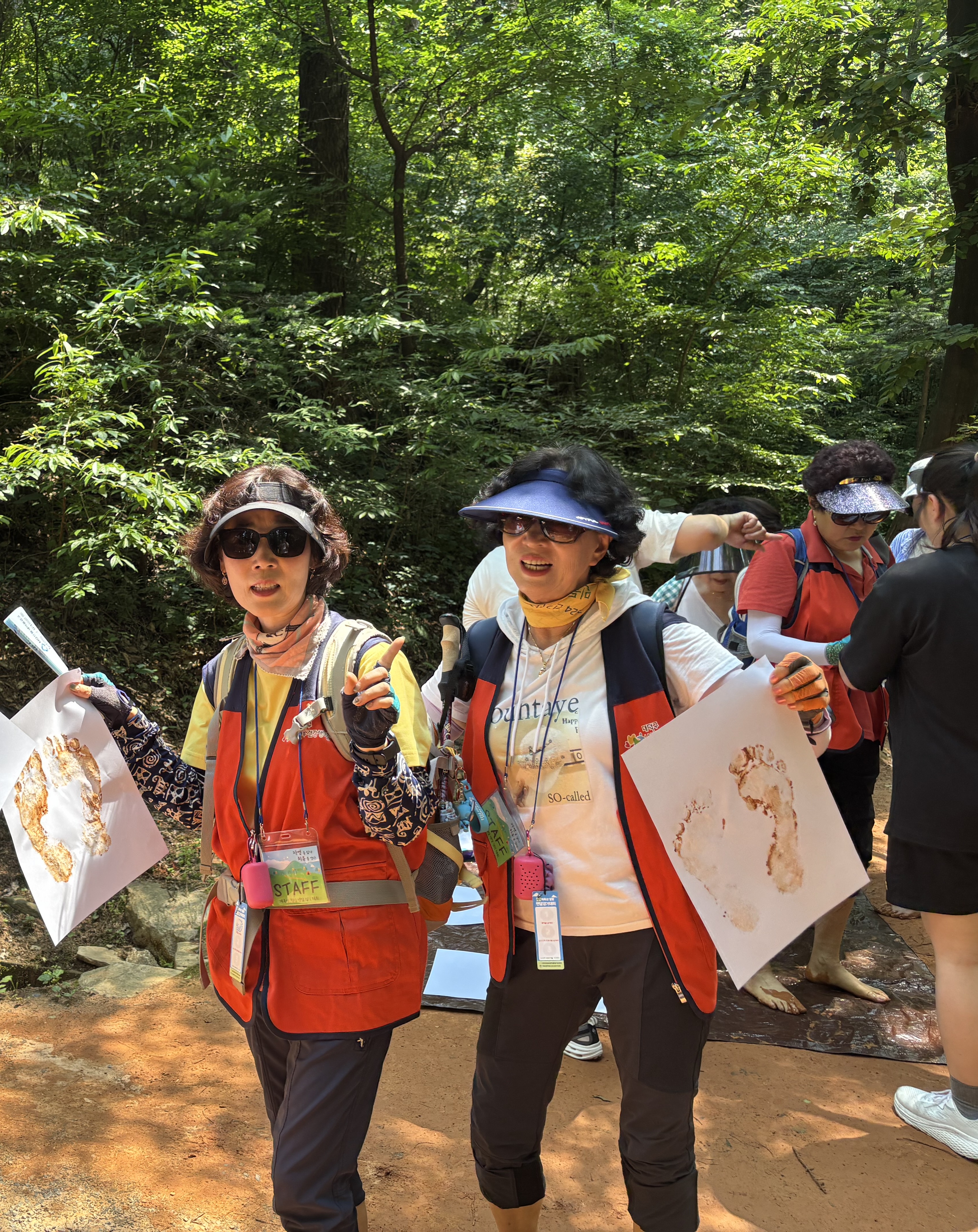 대덕구 중독관리 통합지원센터에서 주최하는 계족산힐링 맨발걷기대회에 참석하여 맨발로 걸으며 스템프투어를 하고 숲속음악장에서 오카리나 연주를 감상하였습니다. (조가 달라서 모두가 함께 찍은 사진이 없습니다)